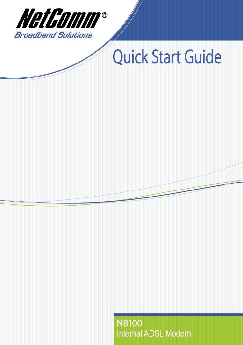 NB100 Quick Start Guide 3YML783 Rev1 IntroductionCongratulations on your purchase of the NetComm NB100 Internal ADSL Modem.Follow the steps in the Qu